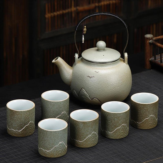French Retro Ceramic Coffee Set | Handmade Ceramic Tea Set |Teapot Set