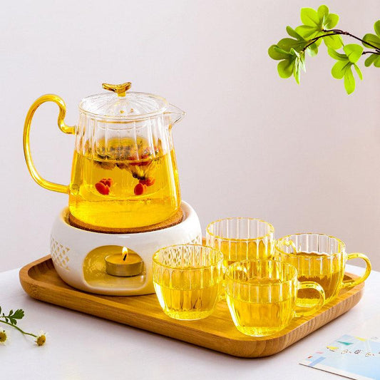 Glass Tea Set | Tea Water Separation Teapot | Candle Heater Teapot