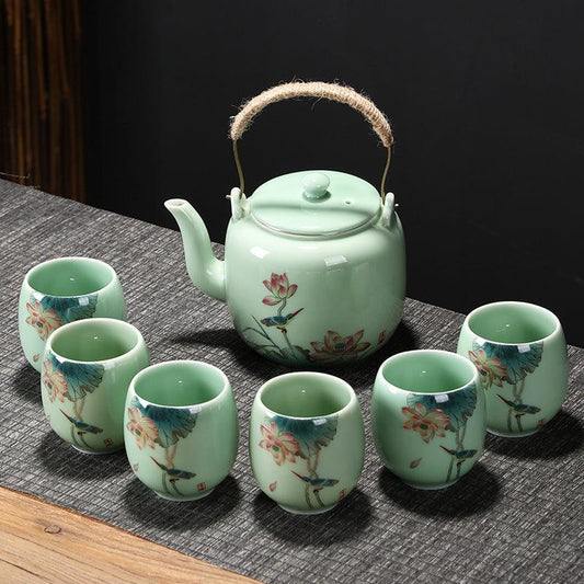 Lotus Ceramic Tea Set|Teapot with Infuser|Japanese Tea Set|Teapot Set