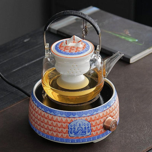 Thousand Buddha Zen Retro Glass Tea Set | Electric Kettle|Glass Teapot